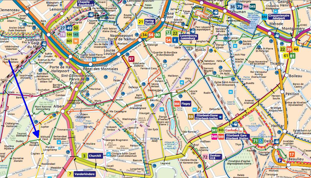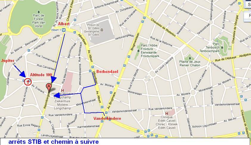 Métro, Prémétro et Tram : Station Albert ou Berkendael